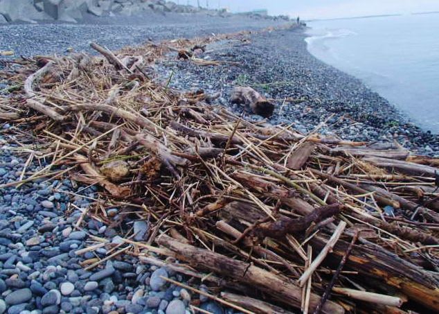 岸に「押上られた」漂着物は流木ばっか。