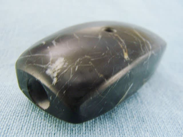 孔に斜めに息を吹込めば笛のような音がするから石笛と呼ぶ。