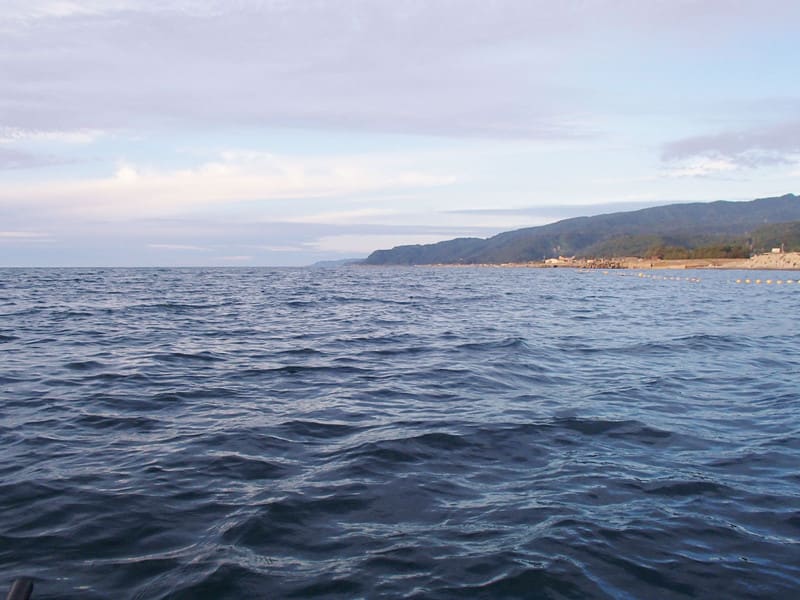 上越市までの航海の出発点をなぜ、城の川から東に20キロ離れた能生町にしたかというと、現在の「城の川」河口周辺には、テトラポットが並ぶ殺風景な海岸線がづっと続いており、丸木舟が出し入れできるインフラが無いためだ。