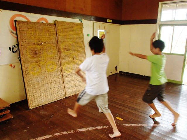 本来は地面に刺すのだけど、古畳があったので的にした。