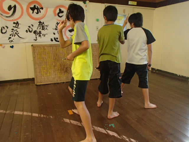 このことで、責任感・決断力・いざという時の行動力といった感覚経験を積んでもらうという目的であって、古武術として手裏剣を教えているのではないので念のため。