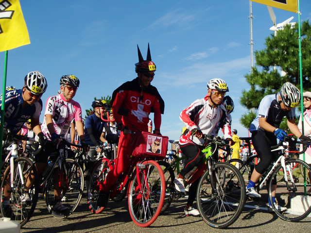 高そうな自転車ばかりでなく、ママチャリや折り畳み自転車で参加する豪の者もいる。