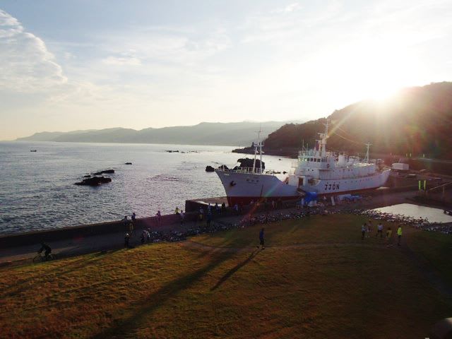 今朝6時の能生町の道の駅マリンドリーム能生。全国からサイクラーが沢山やってきた。
