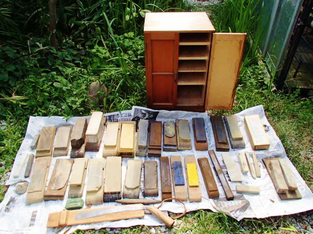 飛騨高山からの段ボールを開けて特に目を引いたのが、自作した専用の箱に収納された大量の砥石類。