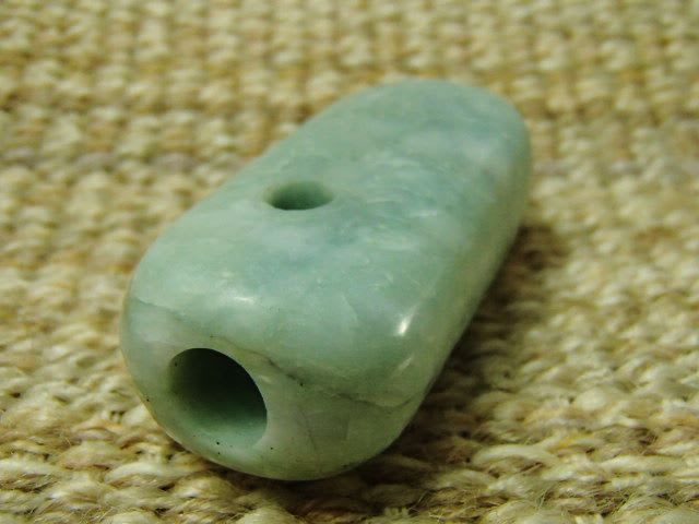 直径8㎜の孔が6㎝の長さで貫通している青森県出土の縄文石笛レプリカ。