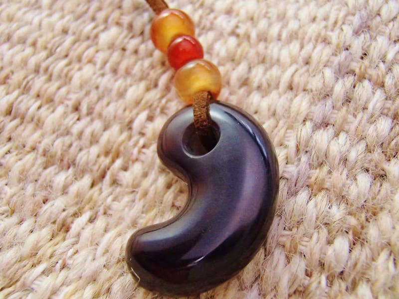 ぬなかわヒスイ工房では、枯渇する一方の糸魚川ヒスイ原石の入手が困難になってきていることもあり、これまで蛇紋岩類などの糸魚川ならではの石材を使った新商品を開発してきたが、今回は黒曜石で磨製の勾玉を作ってみた。