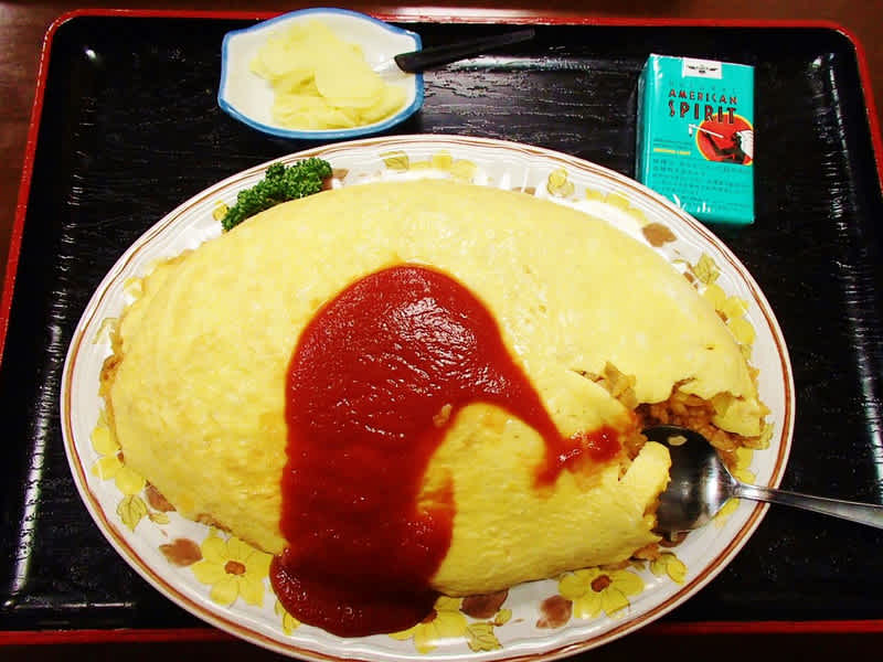 M先生から連れて行って貰ったのが、上越市の七福食堂。名物がオムライスの大盛りとのことであったので注文したら、総重量2キロの巨大なオムライスが出てきた!ご飯だけで三合あるらしい・・・