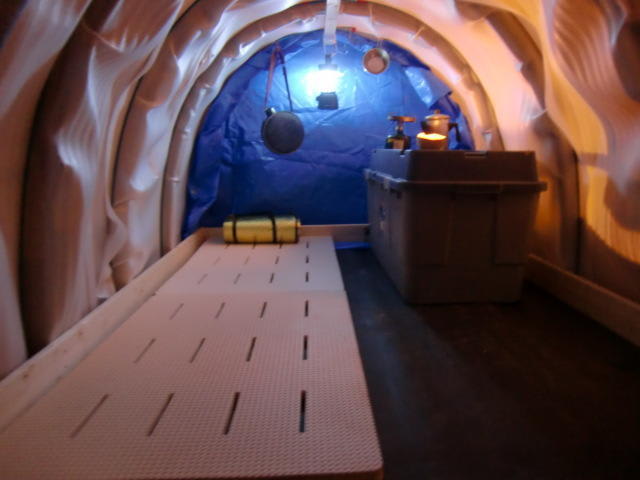 スノコ状になっているから、多少の雨漏りや結露も安心できるし、外で焚火する時には尻の下の敷物にしても具合がいい。