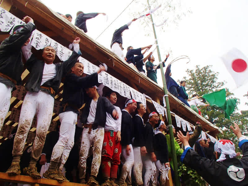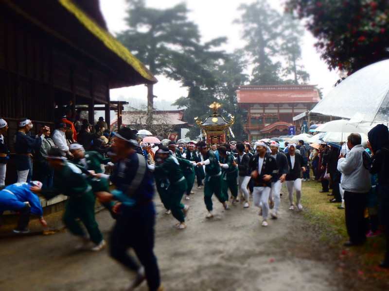 登社する時分には小雨が降りだし、けんか祭りが始まるころには本降りとなった。