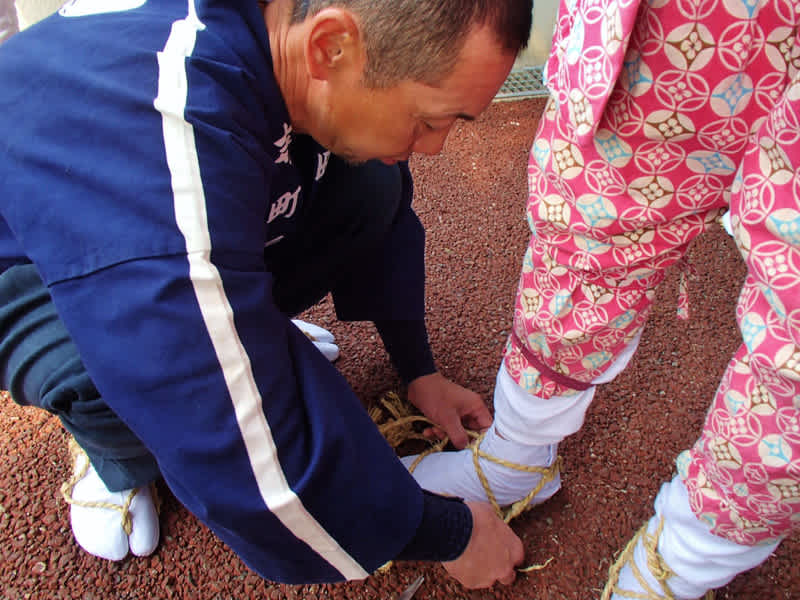 男たちが履く草鞋は、根知区の根小屋で作って貰うそうだ。