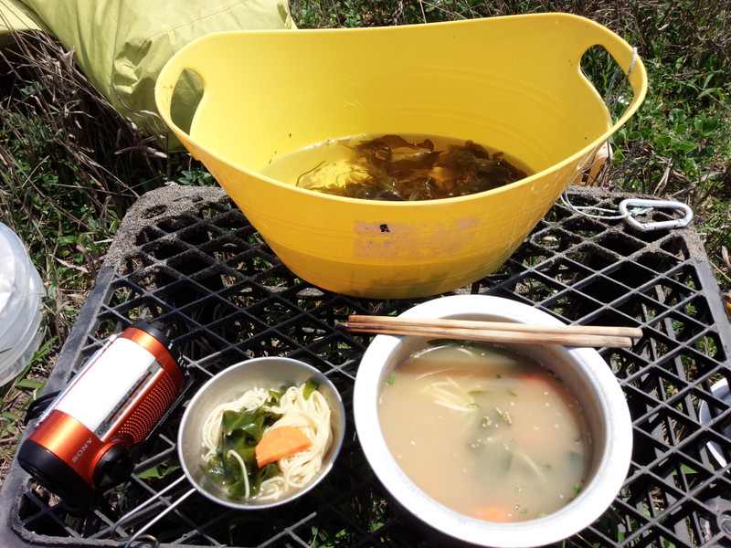 頂いたワカメは海水で洗って、お袋手製の朝鮮味噌で激辛ラーメンや味噌汁を作って食った。