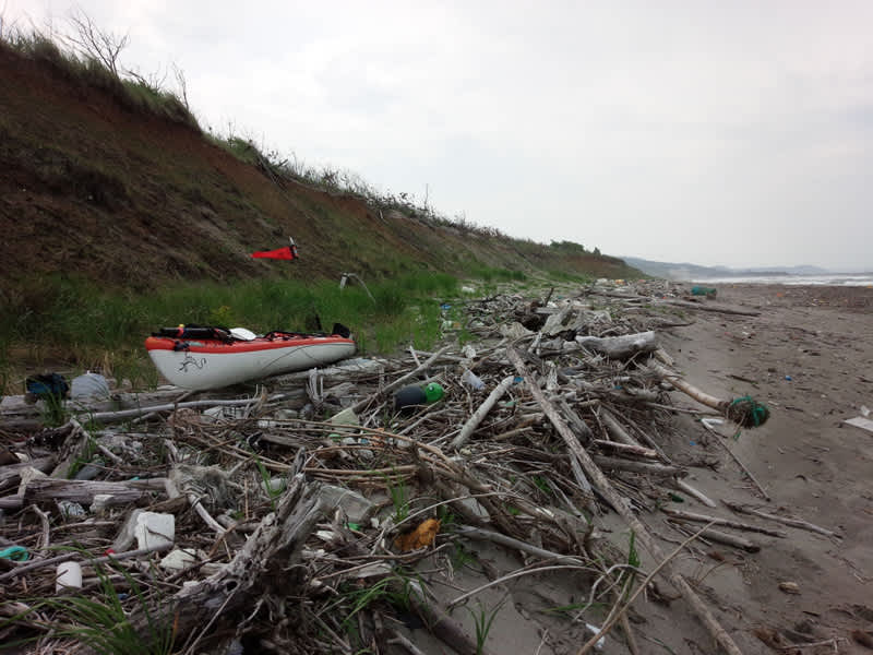波打ち際が迫ってきたので、何度がテントもカヤックも高台移転。逃げ場が無い砂浜だから、少しづつ海が引いていってくれたので安堵。