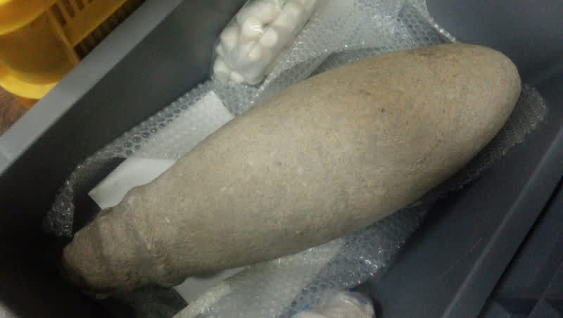 秋田県立博物館に収蔵された大畑台遺蹟の石棒。