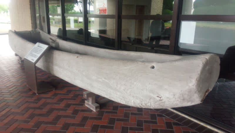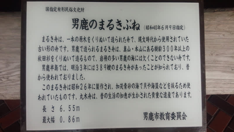 男鹿半島では昭和三十年代まで丸木舟が使われていたそうで、五十嵐主任の案内で、男鹿公民館に展示された丸木舟も見学。