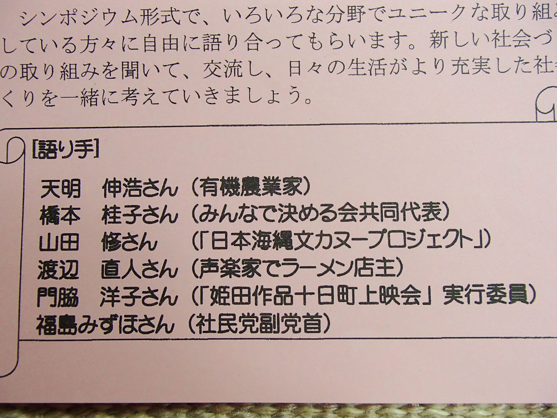 社民党関係の主催といっても、オラは無党派。
