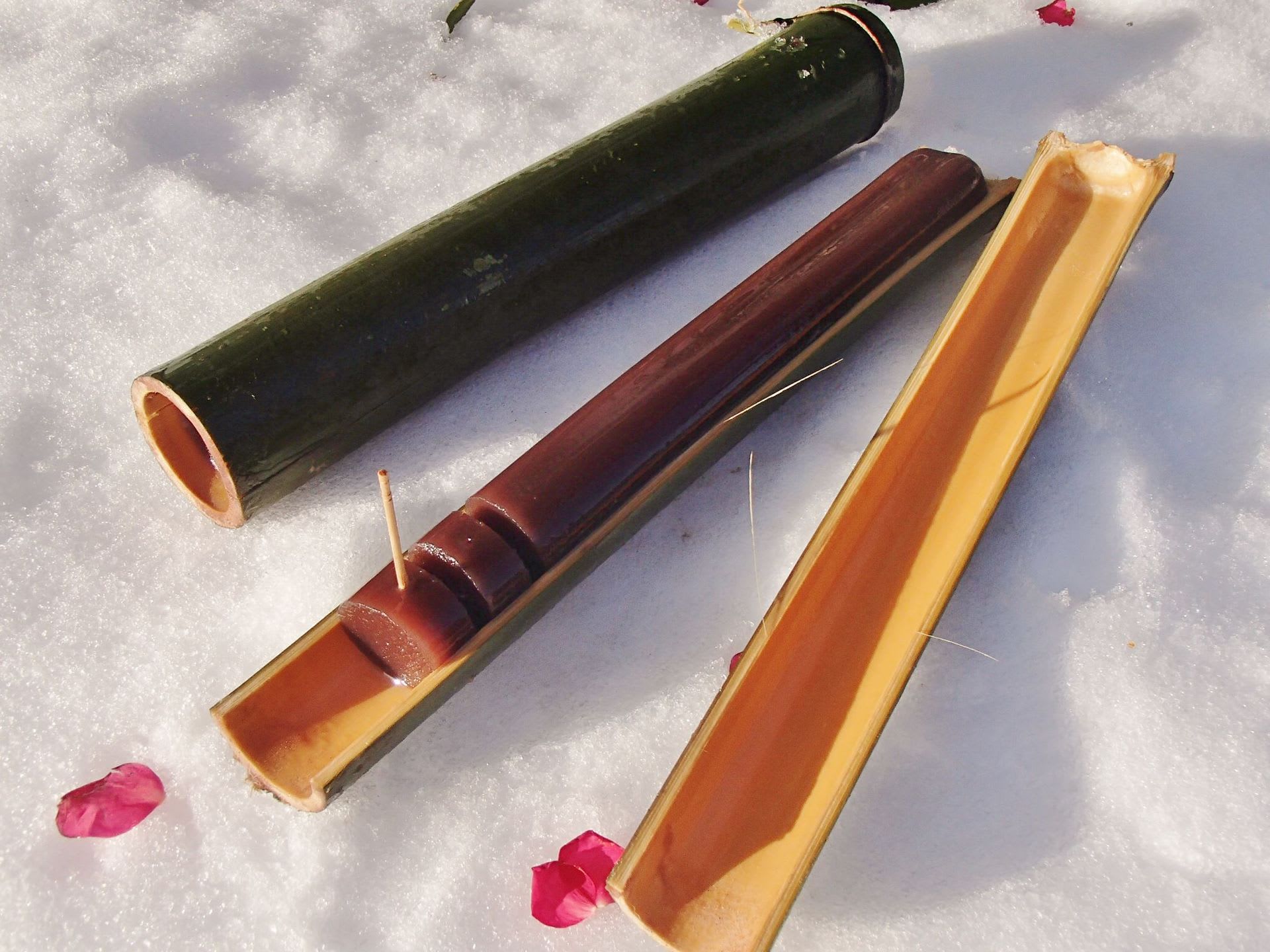 炬燵に入って食う水羊羹はいかが?・・・風流な竹筒で作ってます。