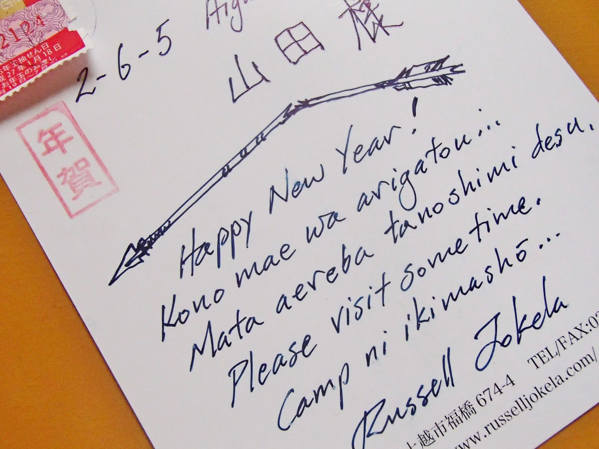 去年、友達になった上越市在住の木工作家のラッセルさんからの年賀状が可愛い。