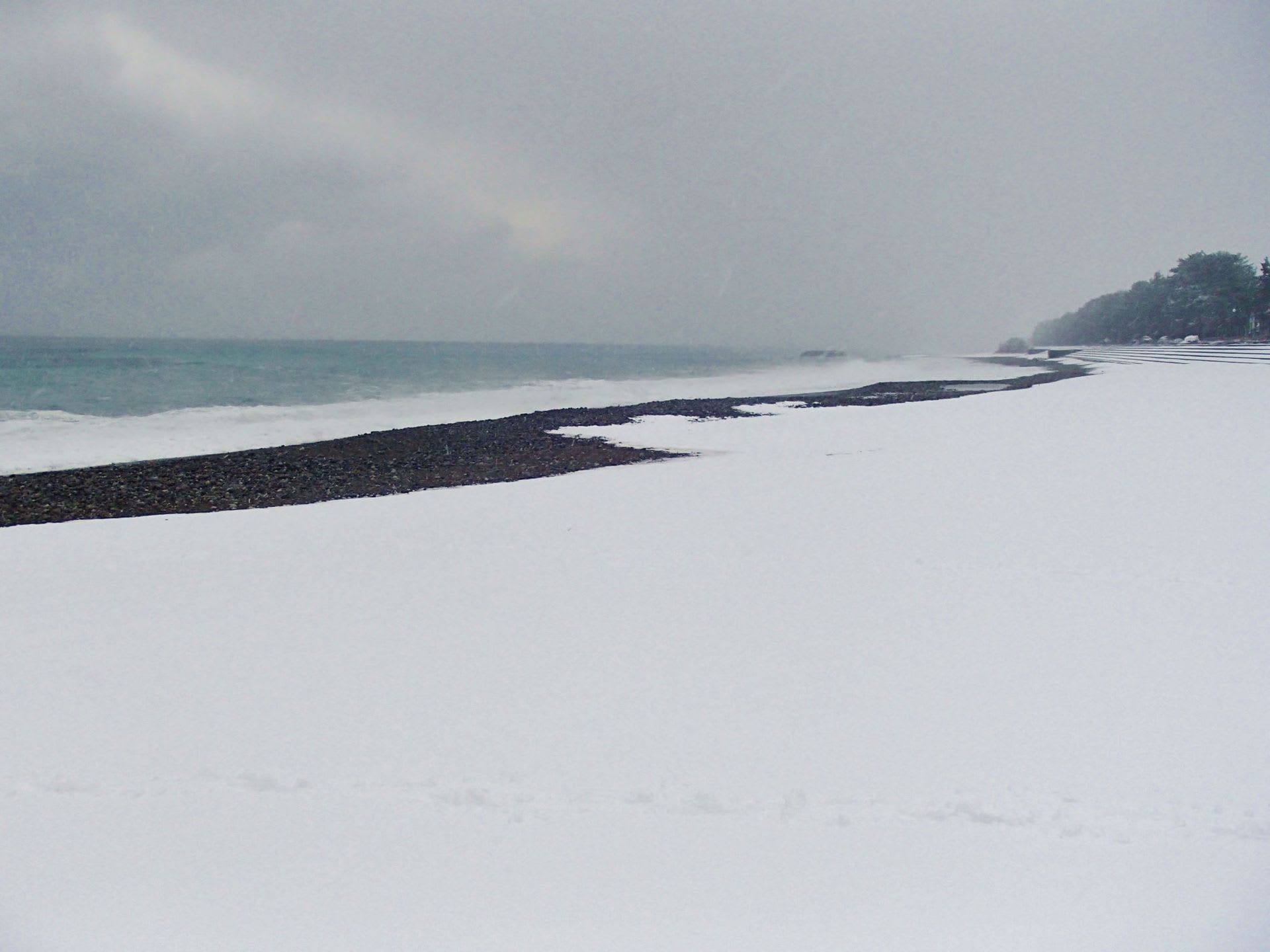 越中宮崎も雪が無いのは波打ち際だけ・・・この日はプロのヒスイハンターと思しきお年寄りが独り歩いていた。