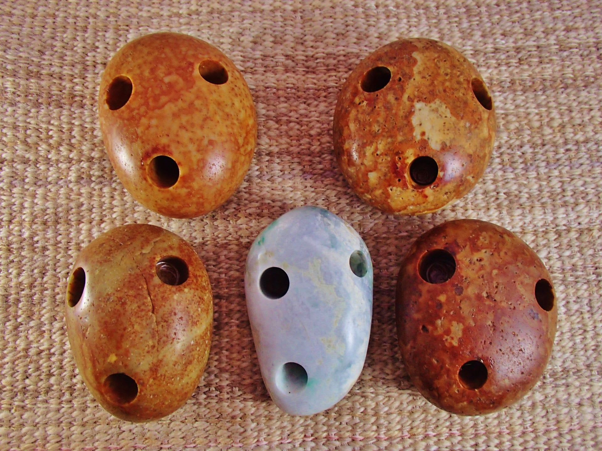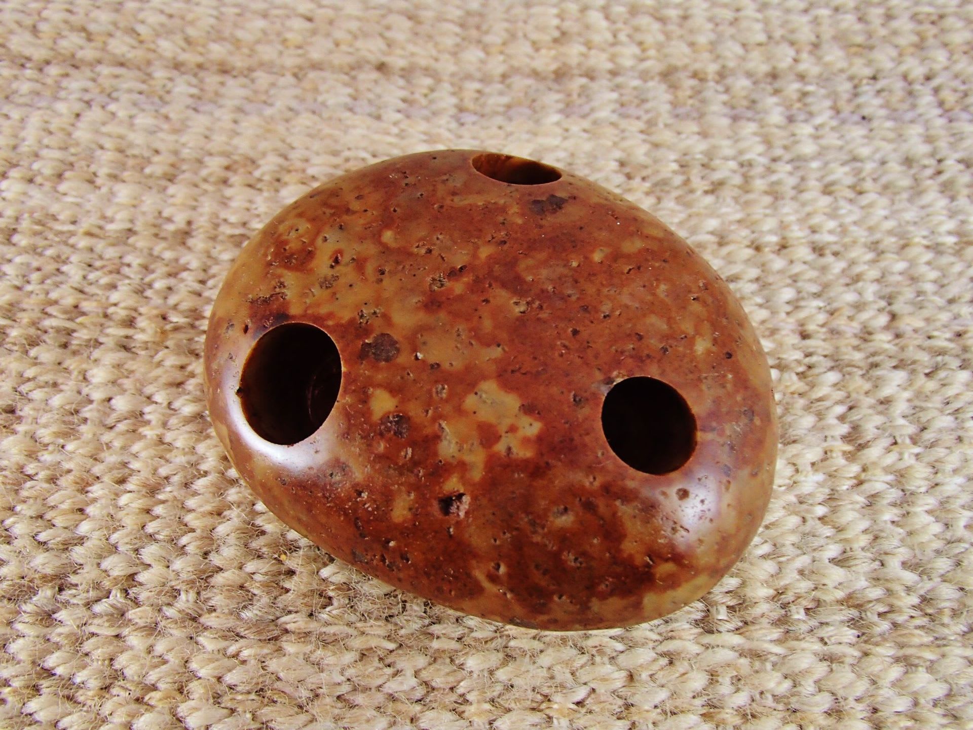石笛の可能性を探っている時に、原石にそのまま精度の良い孔を沢山開けたら?というアイデアが閃いたのが、下の多孔タイプ石笛。