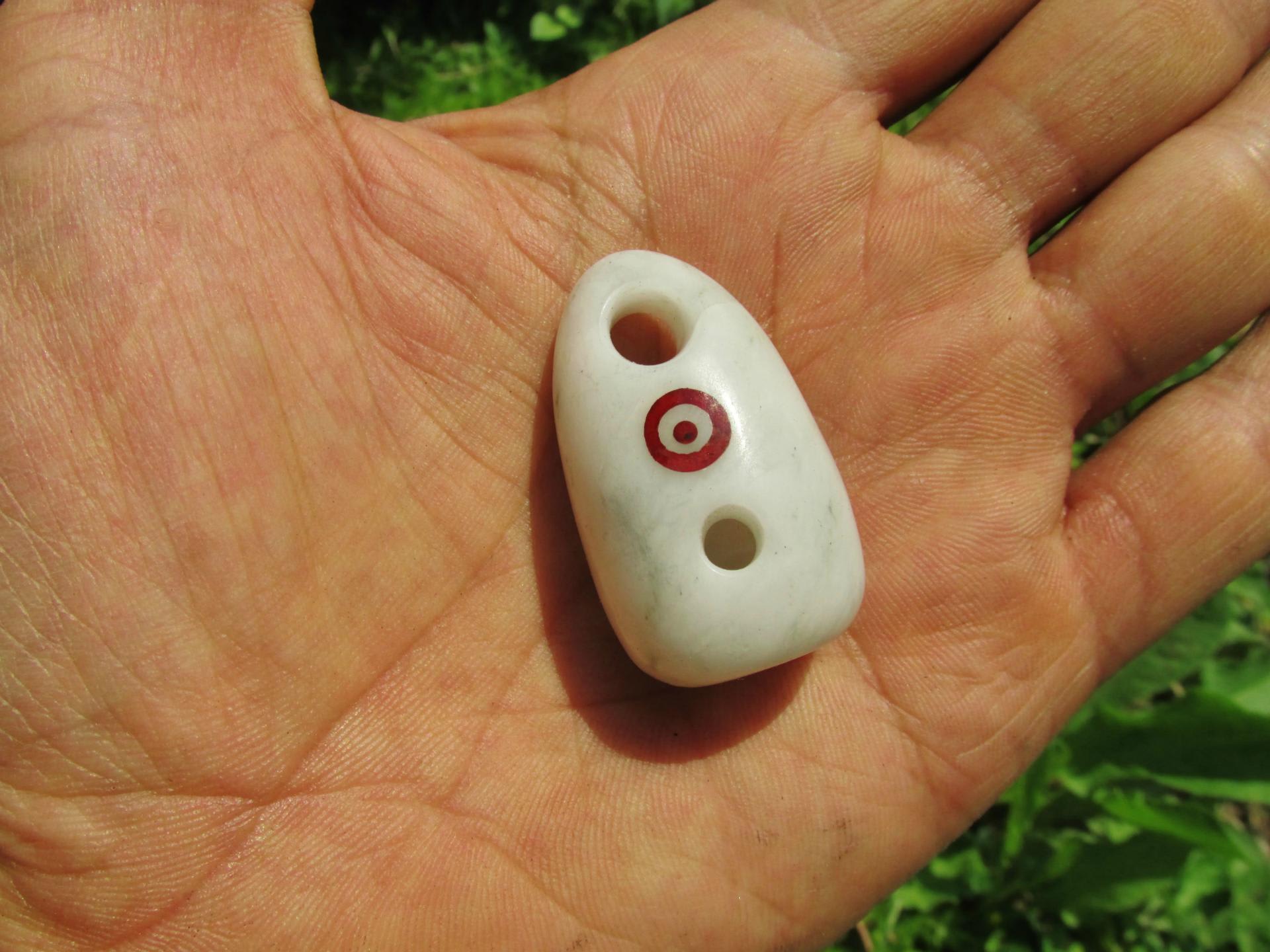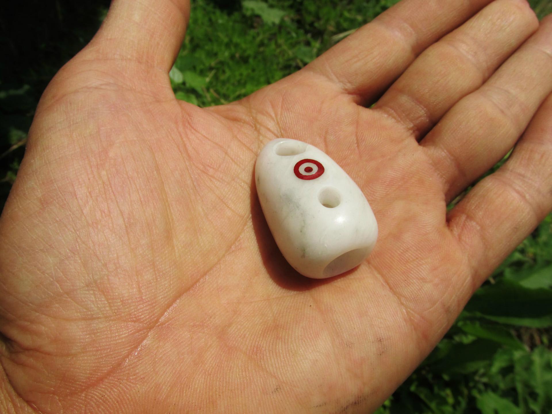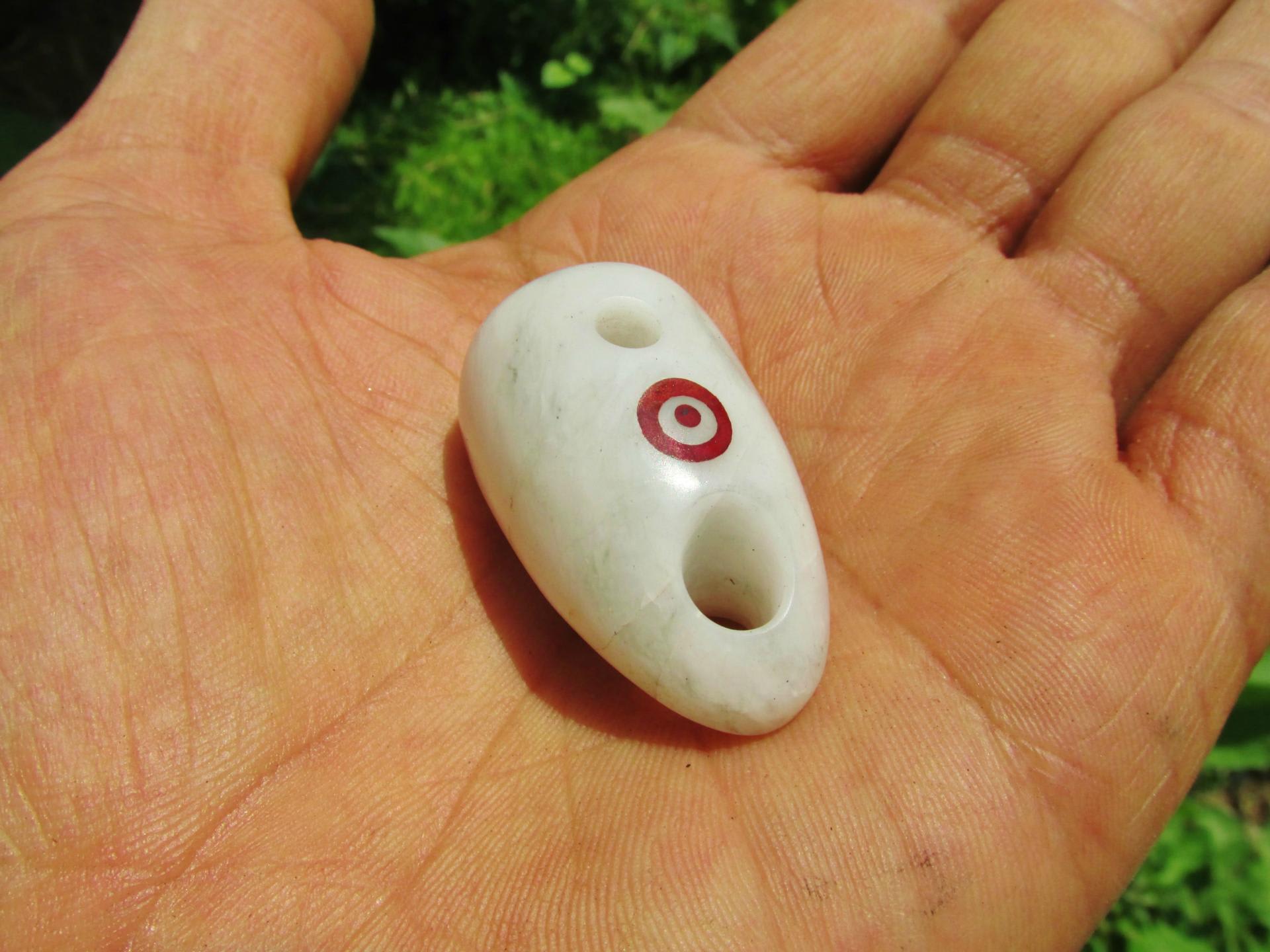 ヒスイに似ており、かってはヒスイとされていたアルビタイトという鉱物で石笛を作ったが、真っ白過ぎて面白味がない。