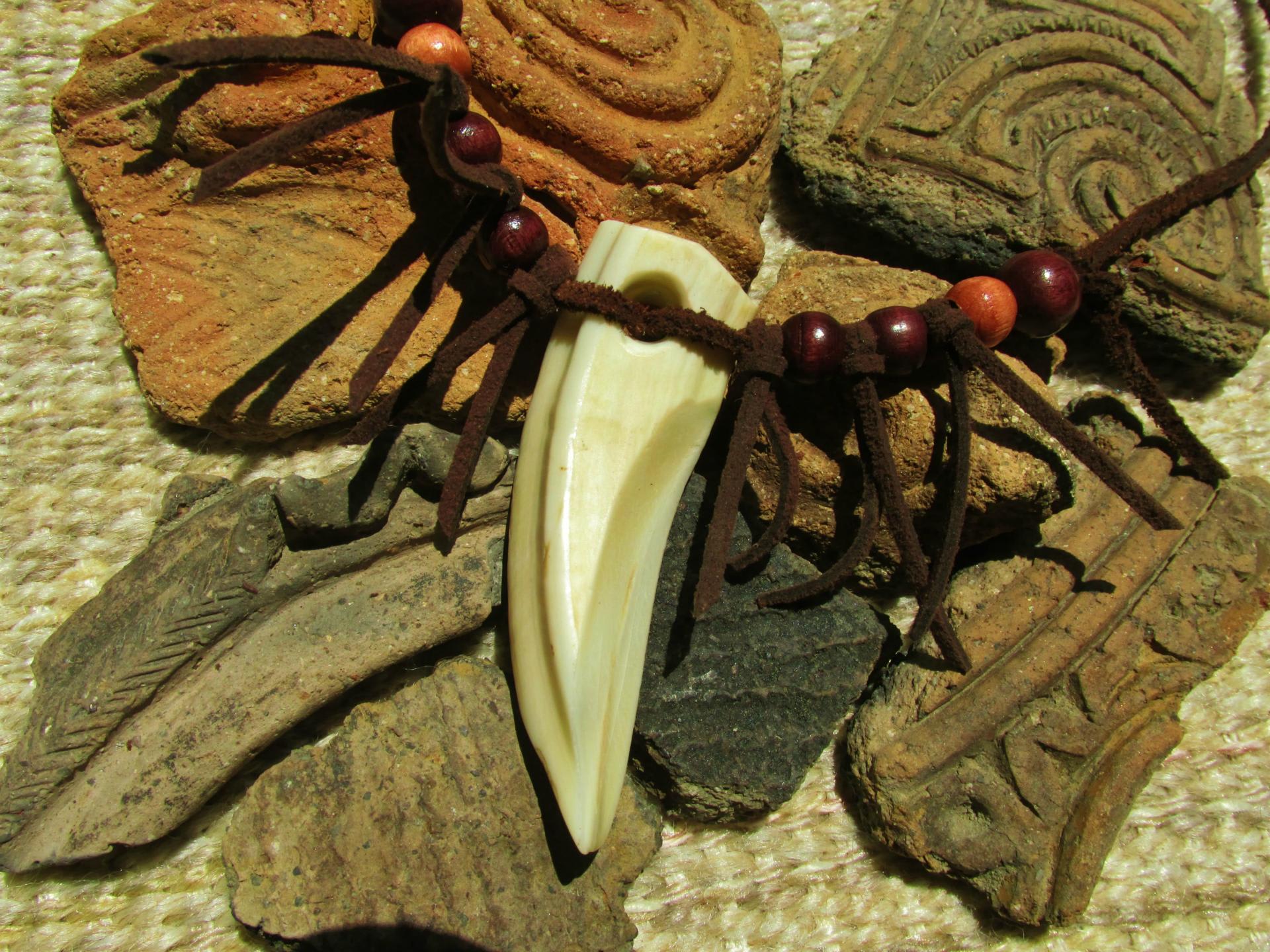 縄文時代には、イノシシや狼、熊の牙に孔を開けた出土品が稀にあり、恐らくはペンダントにしていたと推測されている。