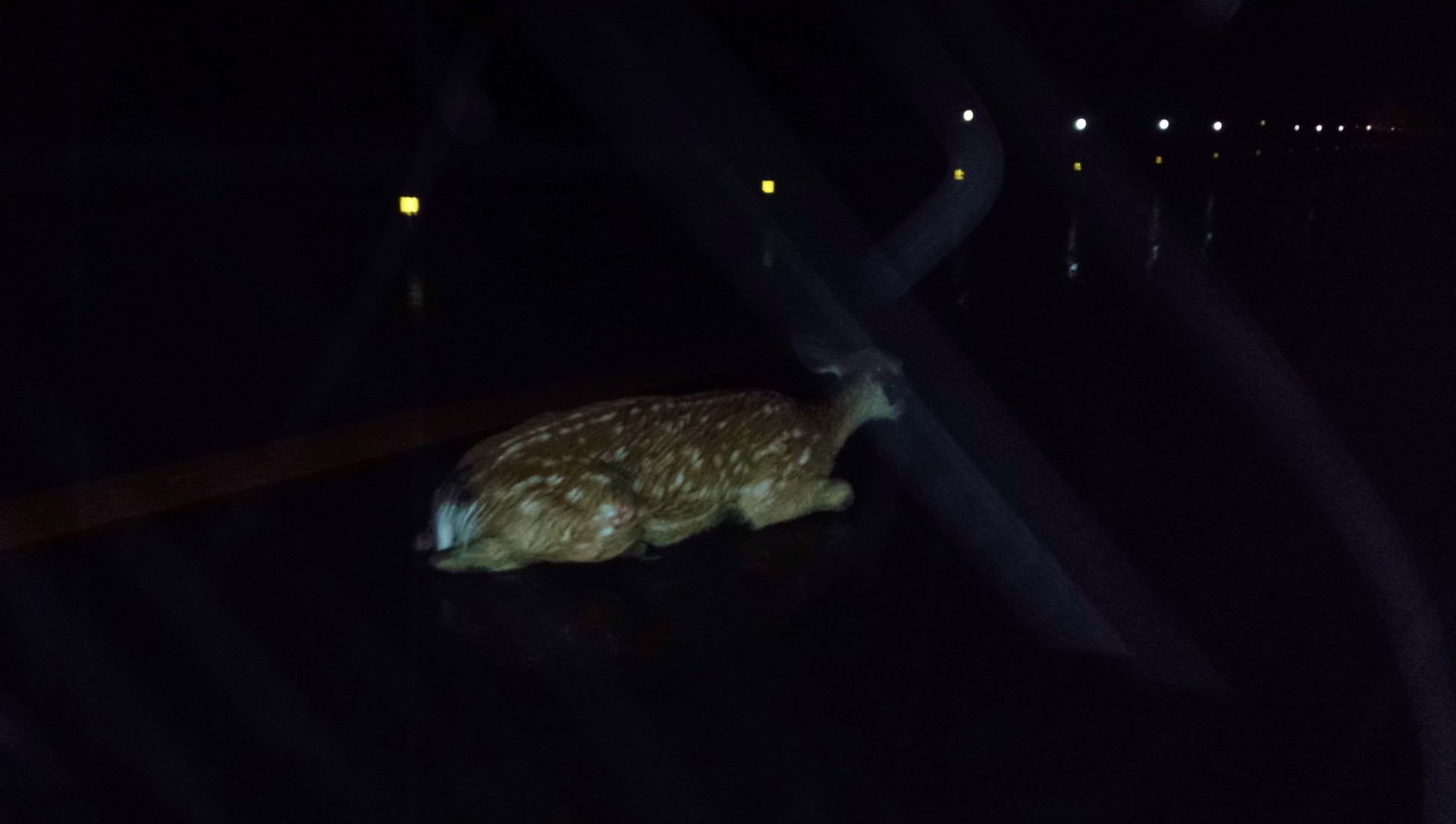 ライトを振って交通整理をしていても、私と小鹿めがけて突っ込んでくる不注意な運転手もいたのだ。