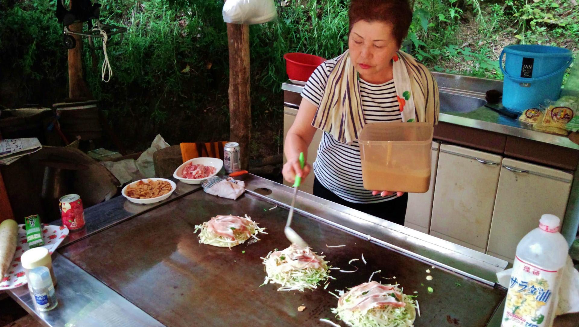流石に広島だと笑えるのが、アウトドアでも業務用のお好み焼き鉄板が用意されていた事。熱源はプロパンガスの本格派である。