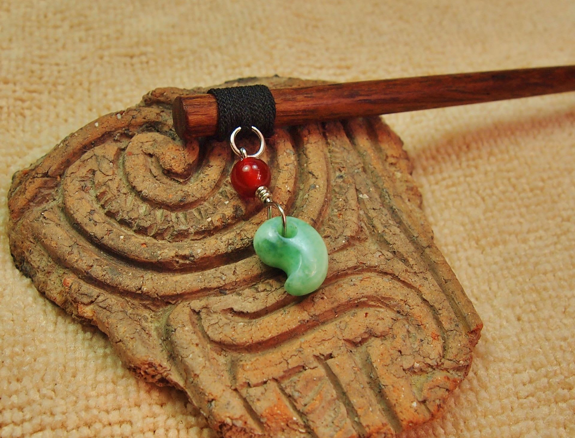 以前、勾玉ピアスを買って頂いたお客様から勾玉の付いたカンザシのご注文。
