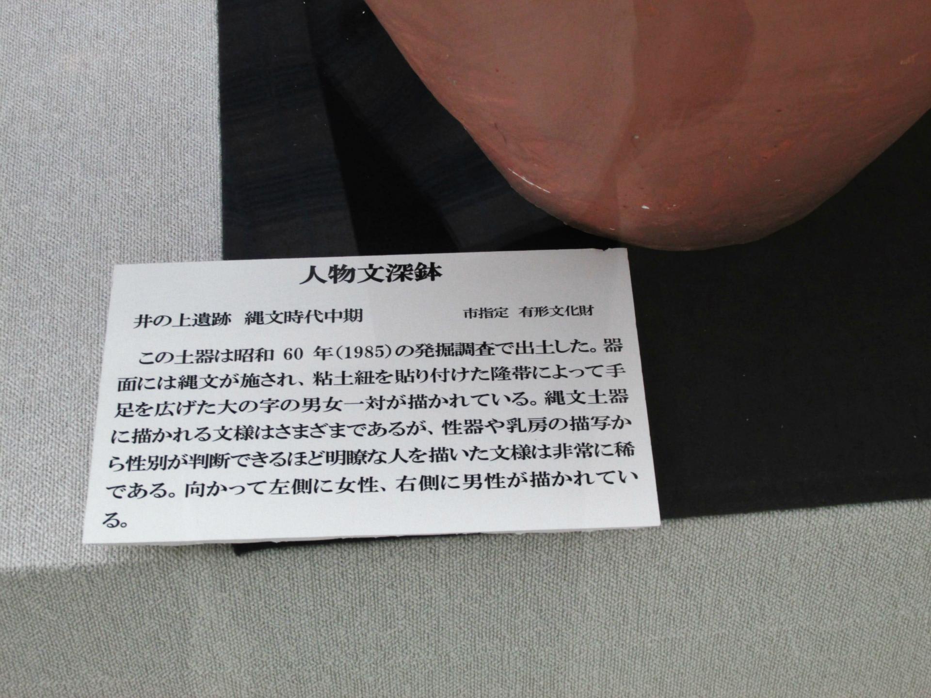 他に類例がない非常に珍しい土器とされる由縁は、一つの土器に粘土紐を張り付けた隆帯紋で、二人の男女が施文されている事。
