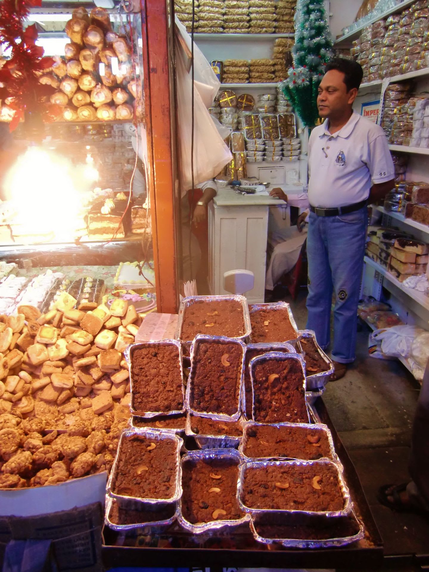 市場のケーキ屋がクリスマスケーキを売っていたので宗派を聞いたら、モスリム(イスラム教徒)との事(笑)