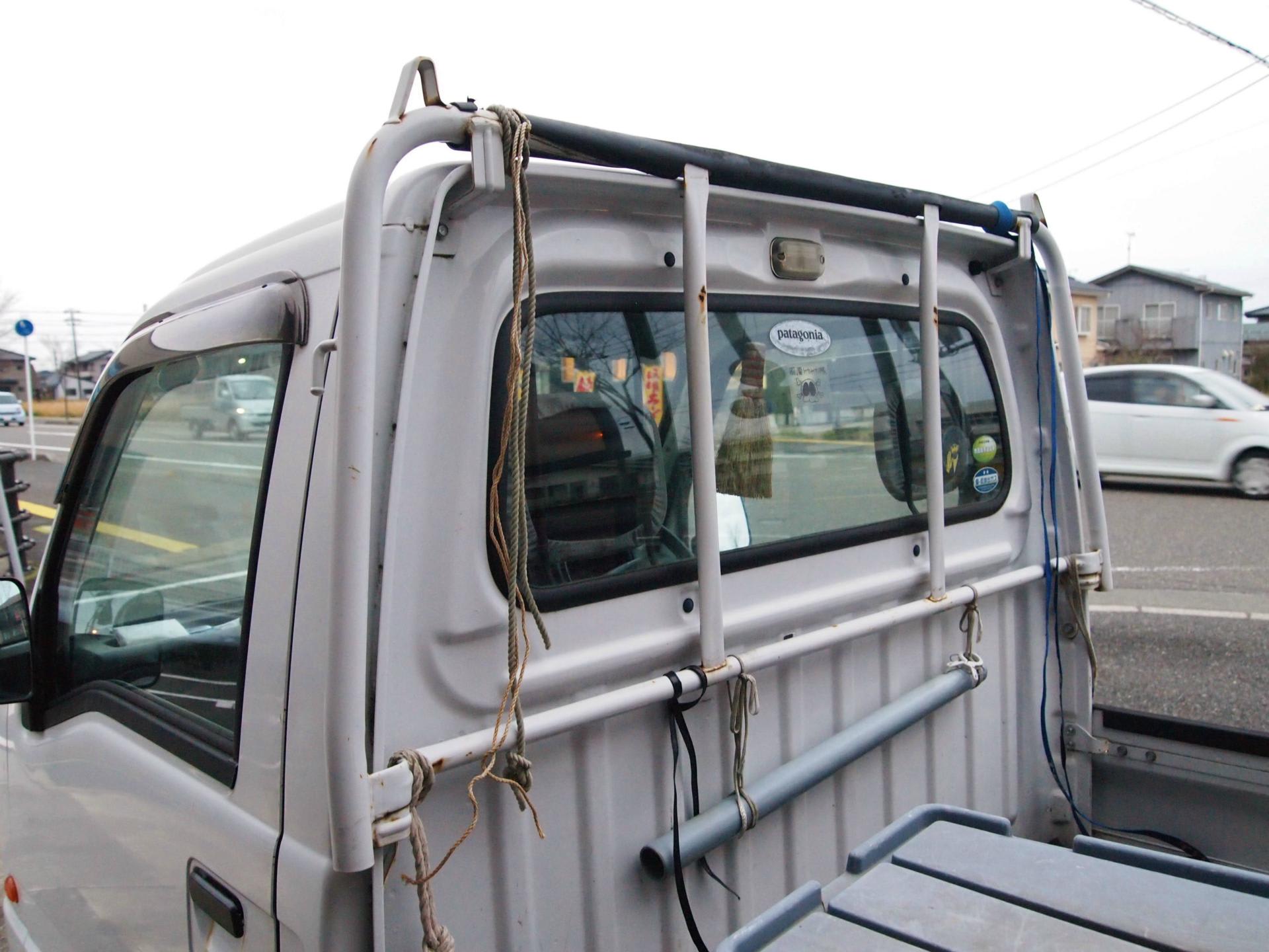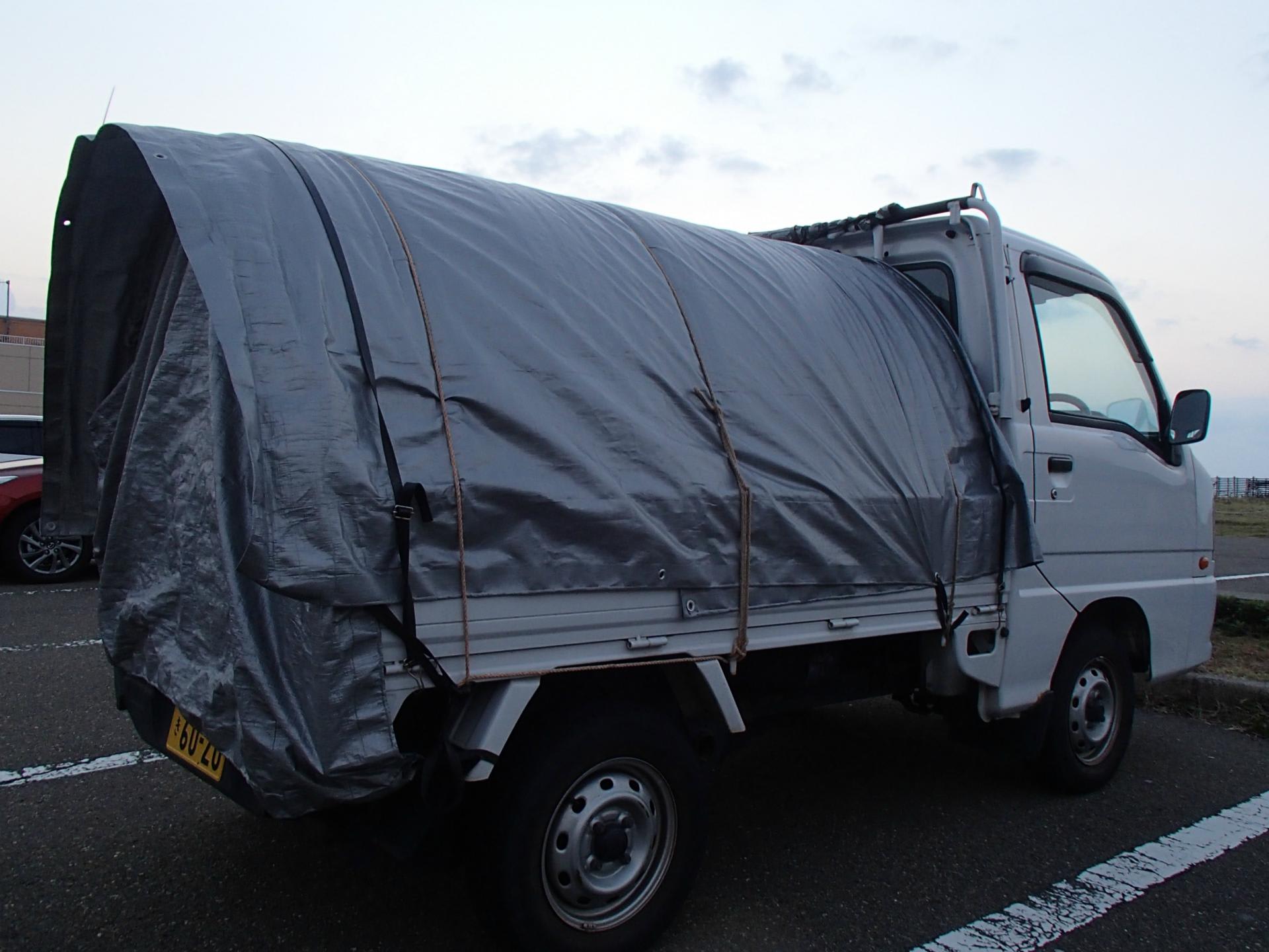 トリイとは運転席後部に設置されている荷物を固定するためのパイプの事で、文字通り鳥居の形をしている。トリイがキャビンより大きくないと大きな荷物が結束しにくいのだ。大きなトリイは、横方向からロープを通して荷物を縛る事が楽!その点スバルは最高である。