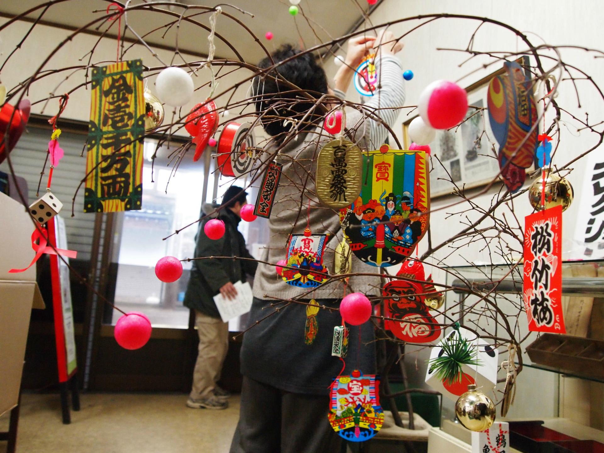 モチの繭玉も古風でいいが、色とりどりの繭玉も景気がよくていいもんですな。
