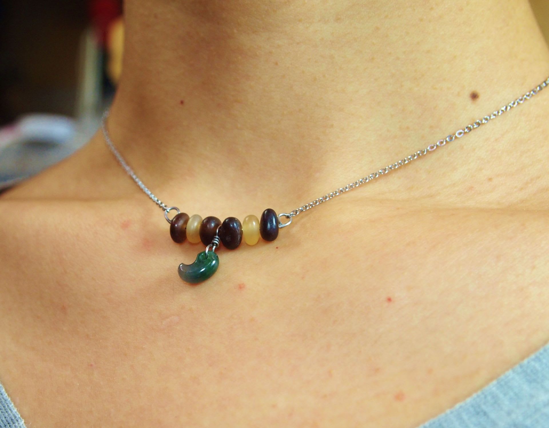ある時、都会に住む親しい女友達から、フェイスブックにアップしたチェーン仕様の超小型勾玉ペンダントの写真に「実際に付けた写真があるともっといいのにい!」というコメントを貰った。