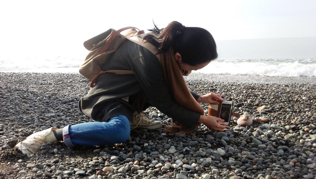 親不知で石拾いの案内の図。綺麗な石ころを見つけても持って帰るより撮影して記憶に留めて置きたいそう。優しい女性だ。