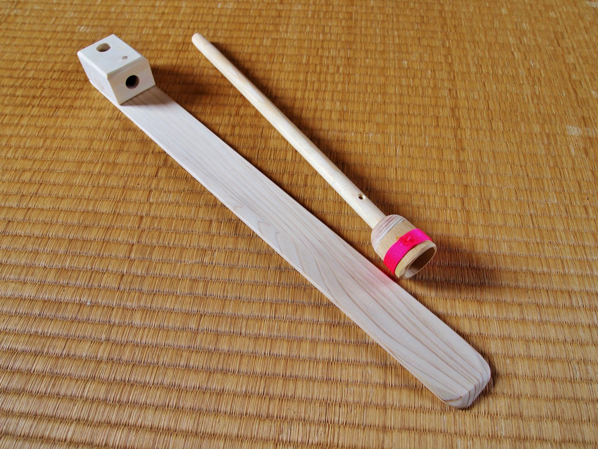 赤い糸を巻いた部分は竹製で、ここに綿を入れたタンポを作って針を刺すのでR!竹は乾燥して割れる事があるので糸を巻いてある親切設計でR!