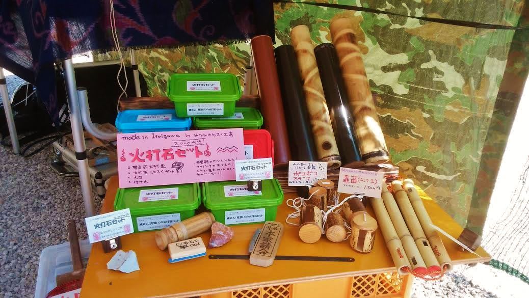 前回は民族楽器を大量に持ち込んでいたので、子供たちどころかノリのいい大人達も楽器で遊んでキャーキャー喜んでいたのだけど、困った事にその分はヒスイ製品のお客さんが寄ってこないという問題発生・・・つまり売り上げが落ちた(笑)
