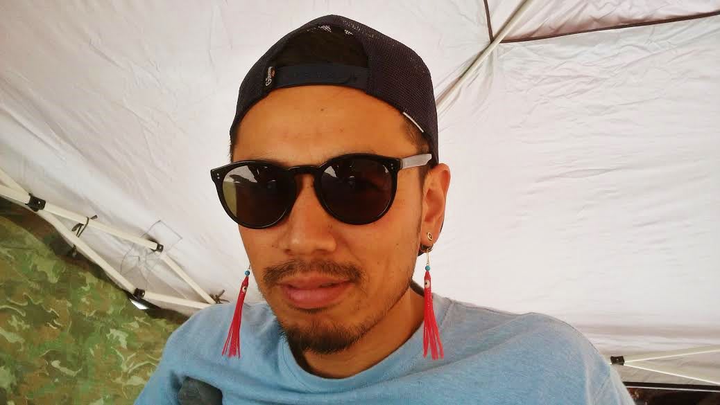 友人知人が応援に来てくれた。シャレで作った疑似餌ピアス(メバル用)を装着するスノーボーダーのホクソンは、瓢箪アート作家でもある。