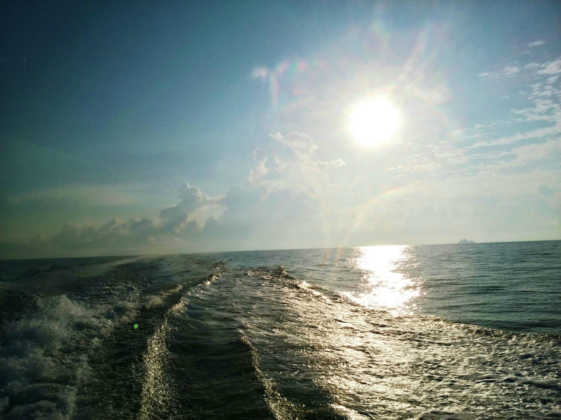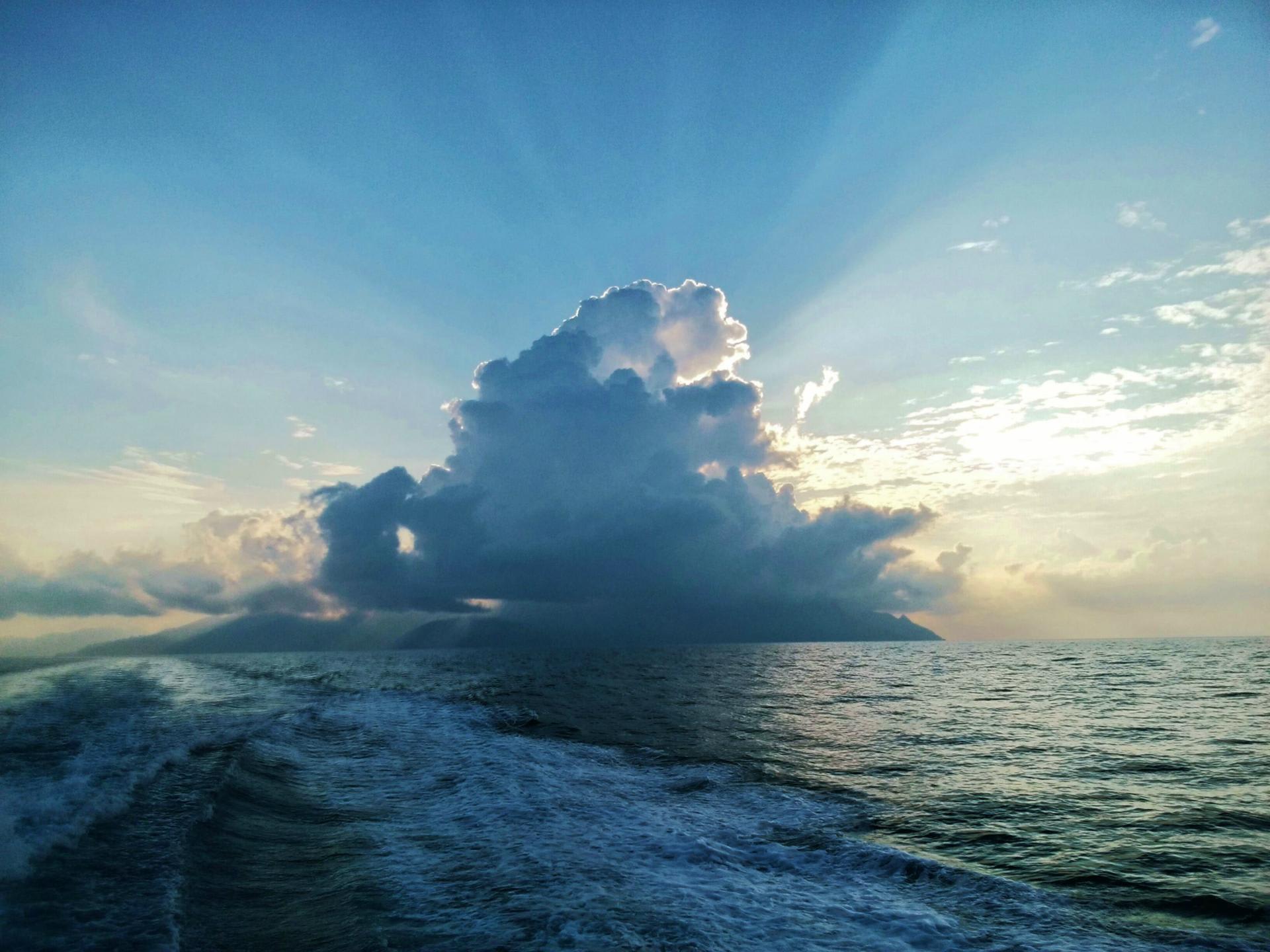 朝日が昇る頃、積乱雲に隠れたティオマン島・・・夜が完全に明けるとその積乱雲さえも水平線に溶けて見えなくなっていった。