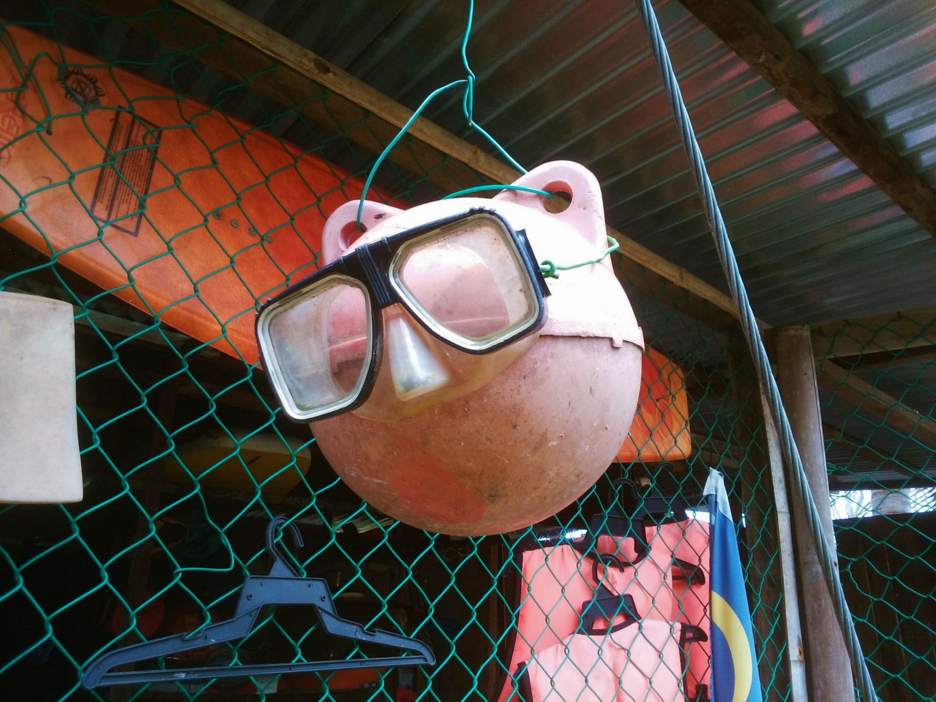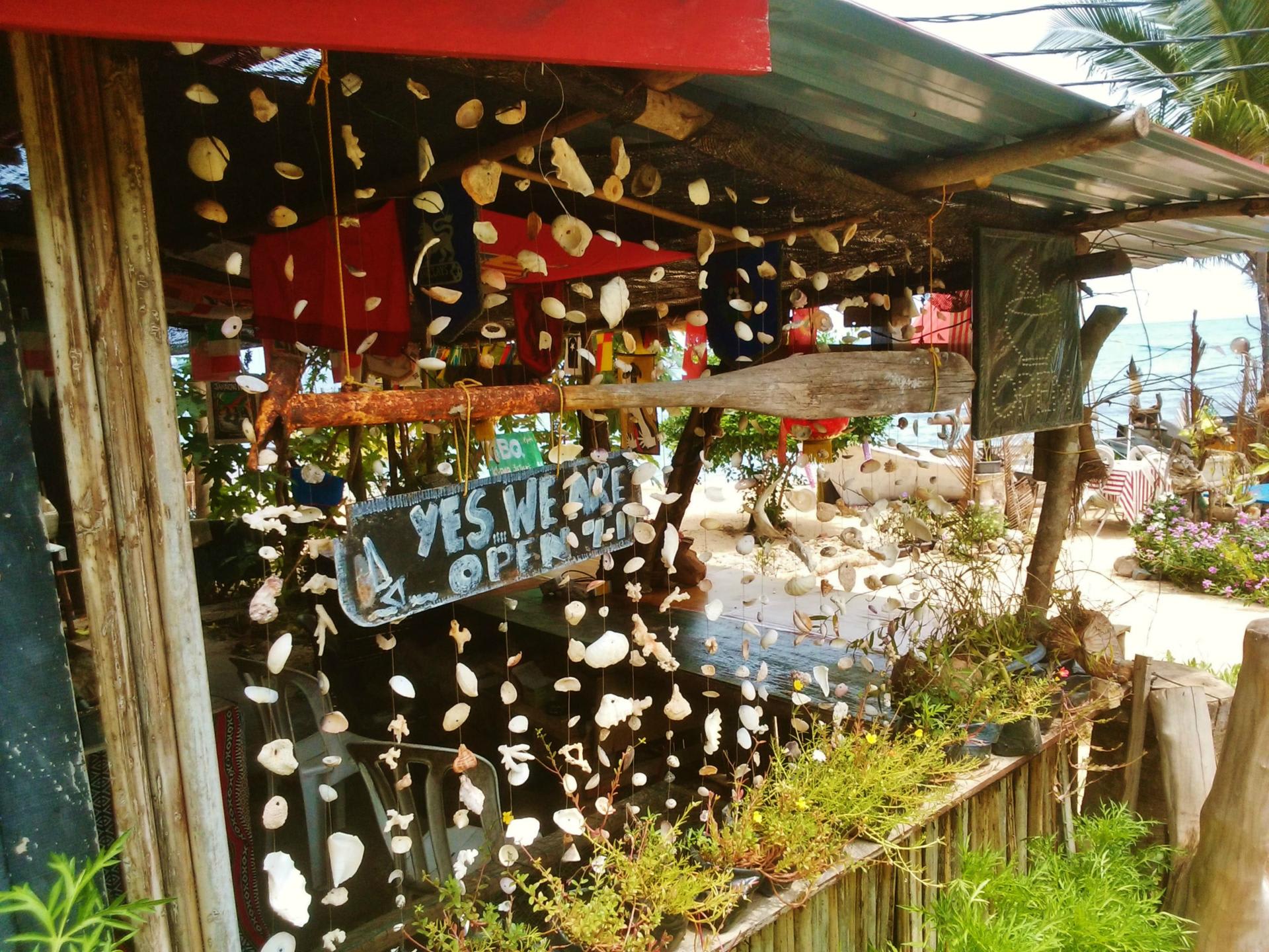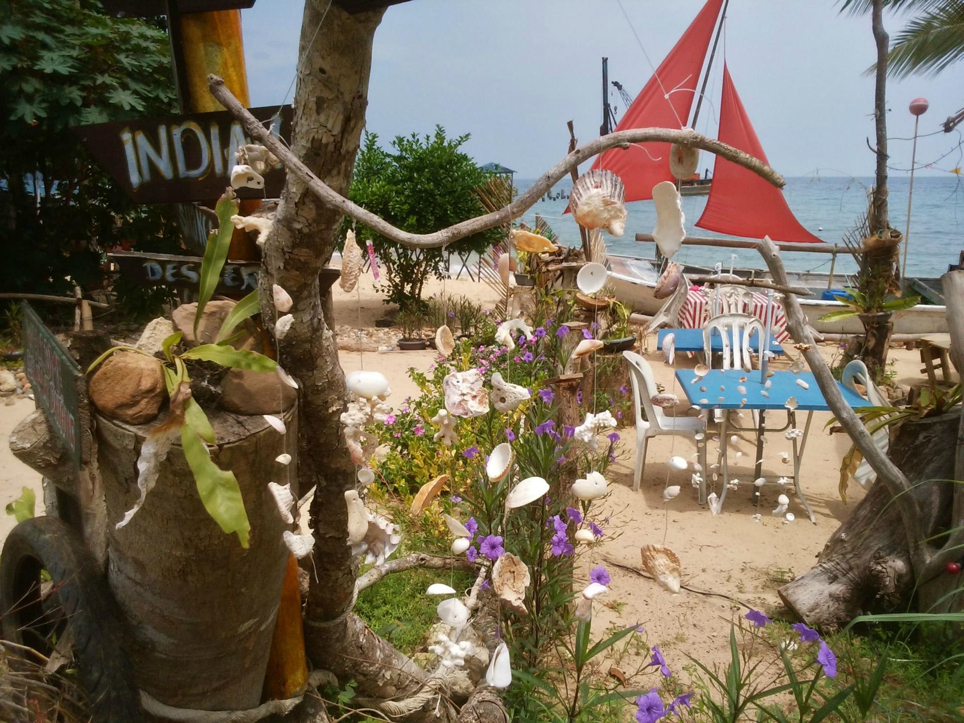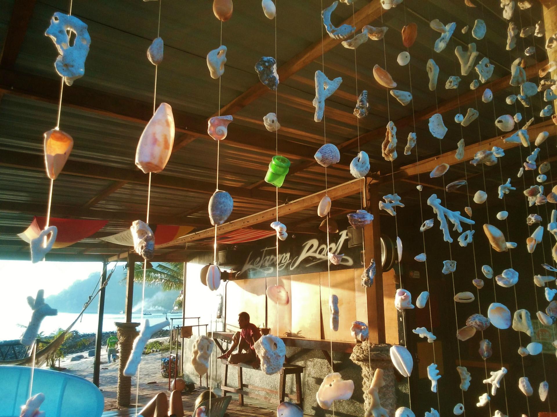ティオマン島の食堂を飾る漂流物オブジェがイカス。