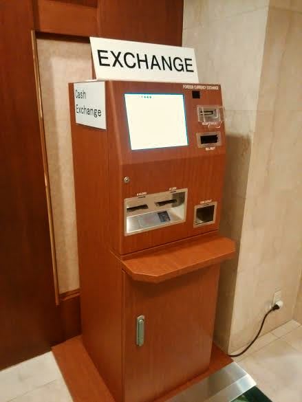 このホテルが素晴らしいのは、ロビーに置かれた両替機でドルやユーロだけではなくアジア各国の現金が両替出来るサービス。
