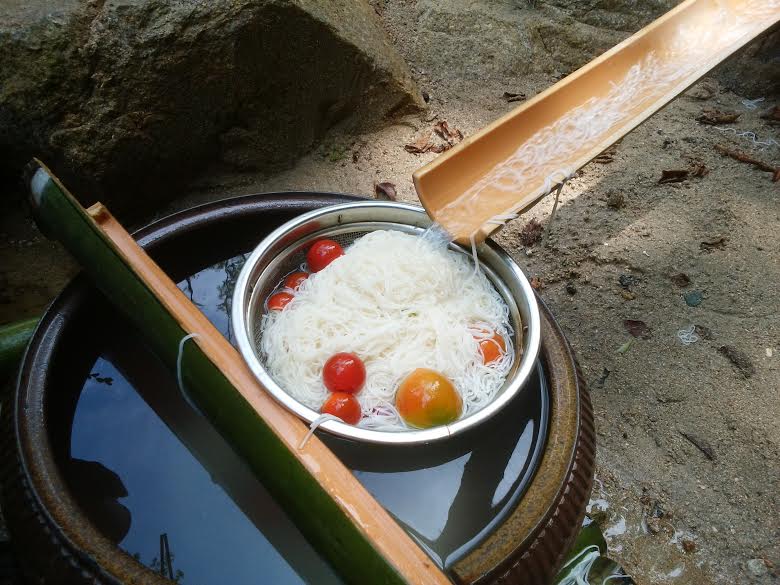 夏休み恒例の流し素麺は、近所の家族連れに大人気。