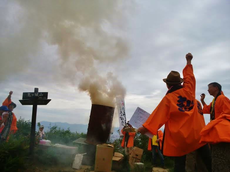 のろしリレーでの発火に成功・・・湿気があったので縄文式の摩擦式発火法ではなく、火打石での発火。