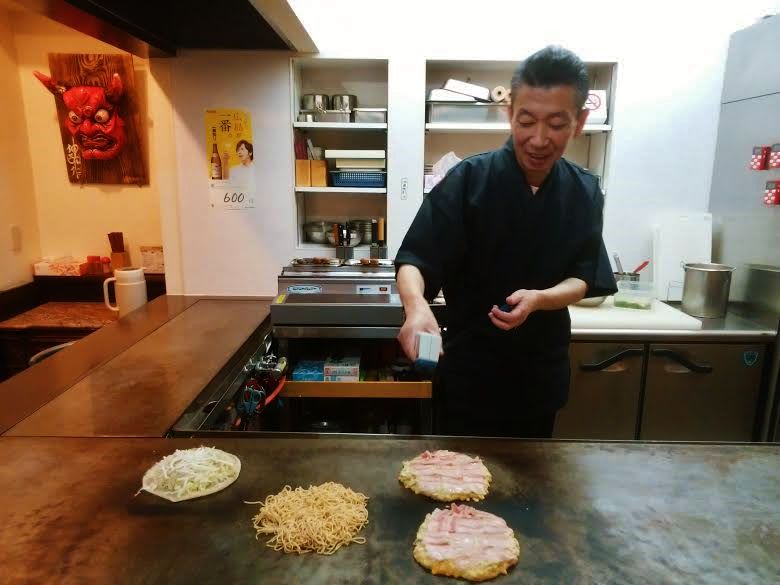 一年前に一度だけ連れて行って貰ったお好み焼き屋さんに再訪。私の事を「新潟の縄文の先生」と覚えていてくれた。店主は油を引かずにお好み焼きを焼く流儀だから、温度センサーで鉄板の温度を測るこだわり様。