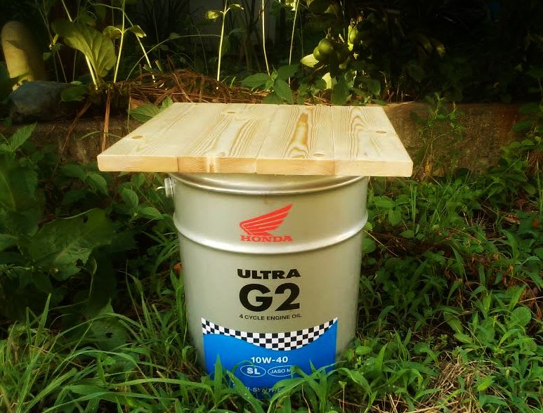 ペール缶は、行きつけのバイク屋さんや車屋さんで貰えば只である・・・大人だからそれなりの謝礼は必要。
