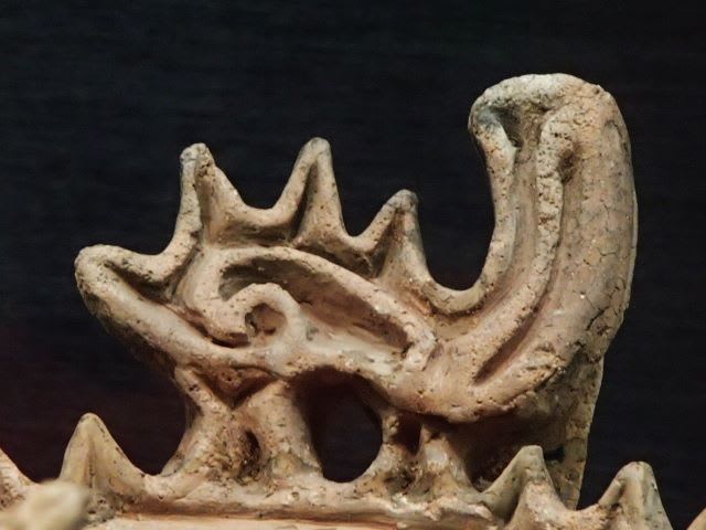 構成部分だけでもシビレるデザインで、特に火焔土器を特徴付ける口縁部(コウエンブ)を飾る鶏頭冠(ケイトウカン)が格好いい。鶏頭冠とは読んで字のごとく鶏の頭のような形状の突起である。