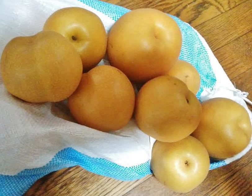 大きさと形が不揃いなので規格外で売り物にならないそうだが、なんてたって旬の梨である。