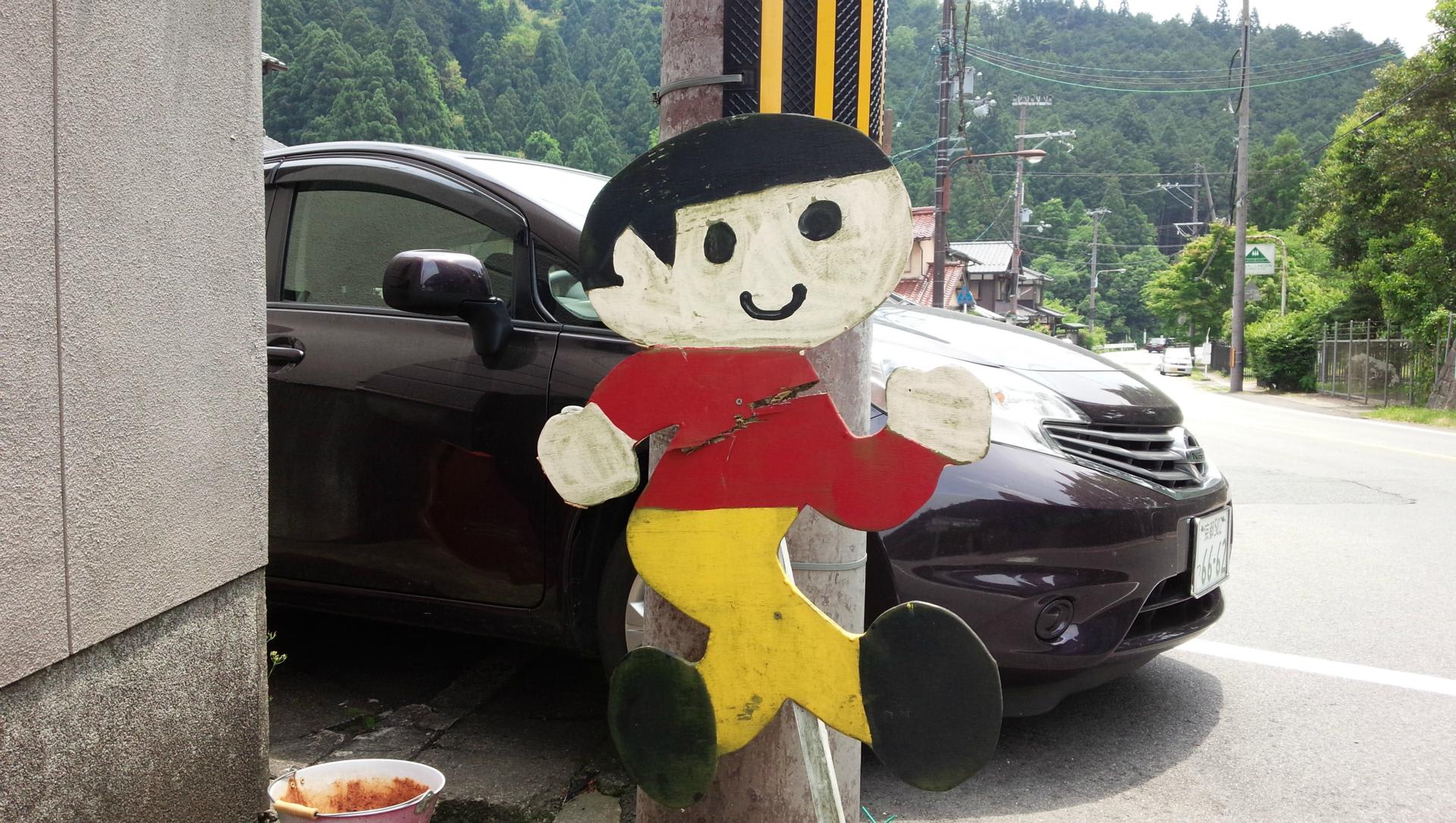 今回は滋賀名物の「飛び出し坊や」がサービスショット!大津の看板屋さんが考案して全国に広まった「飛び出し坊や」は、この付近の道路に至る所に立っていて「滋賀に来たぁ!」、と否応にも旅情を高めてくれる(笑)