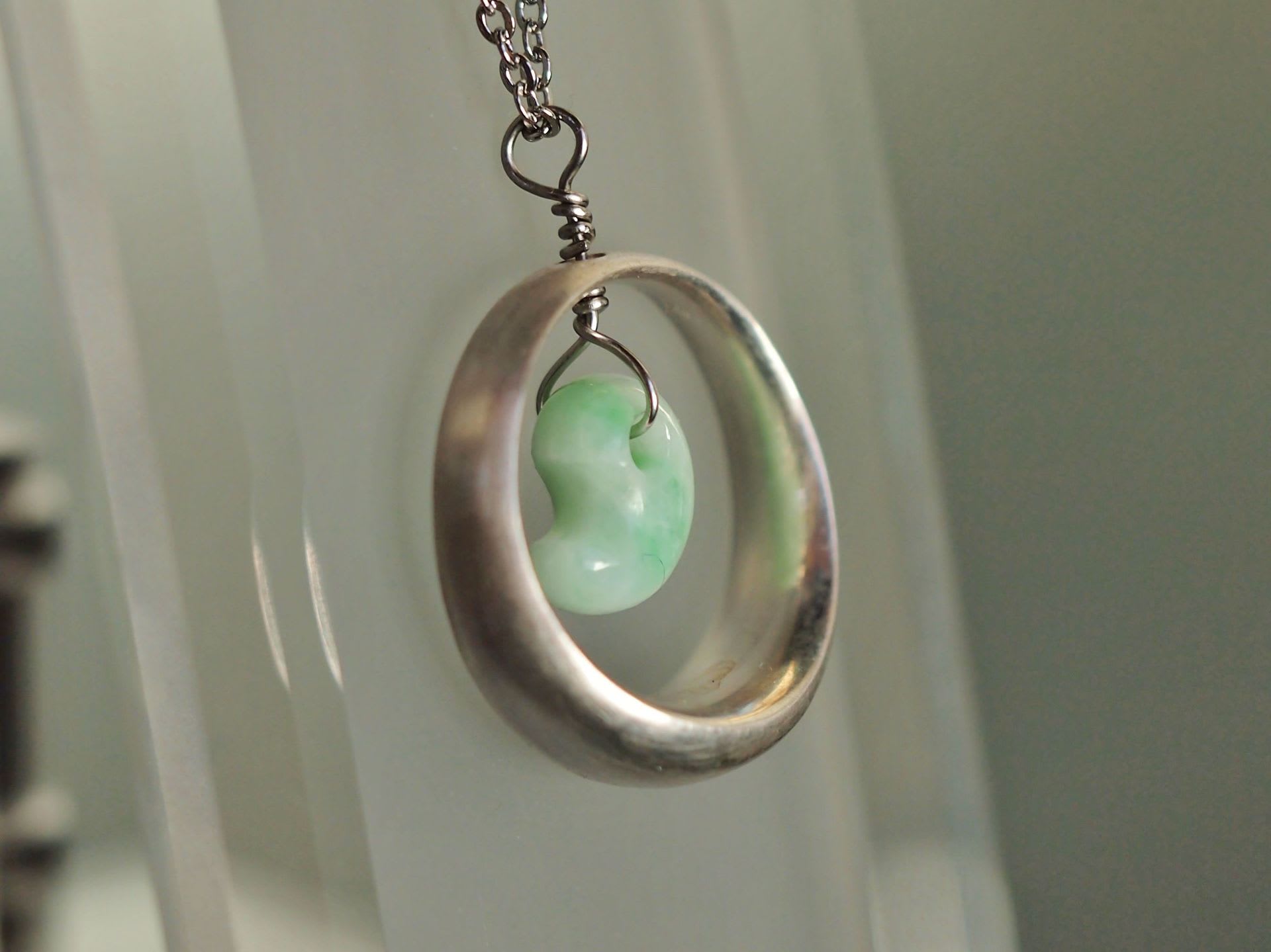 そこで胎児らしく、というコンセプトで開発したのが、子宮に浮かぶ胎児、あるいはゆりカゴに揺れる嬰児をイメージした勾玉。