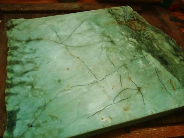 普通のヒスイ職人さんは手を出さないタイプの原石だろうが、私にとってはお宝なので有難く頂く。