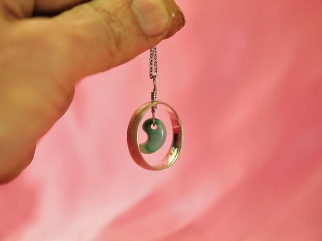 ぶら下げると勾玉がリングの中をクルクル回るのがチャームポイント。